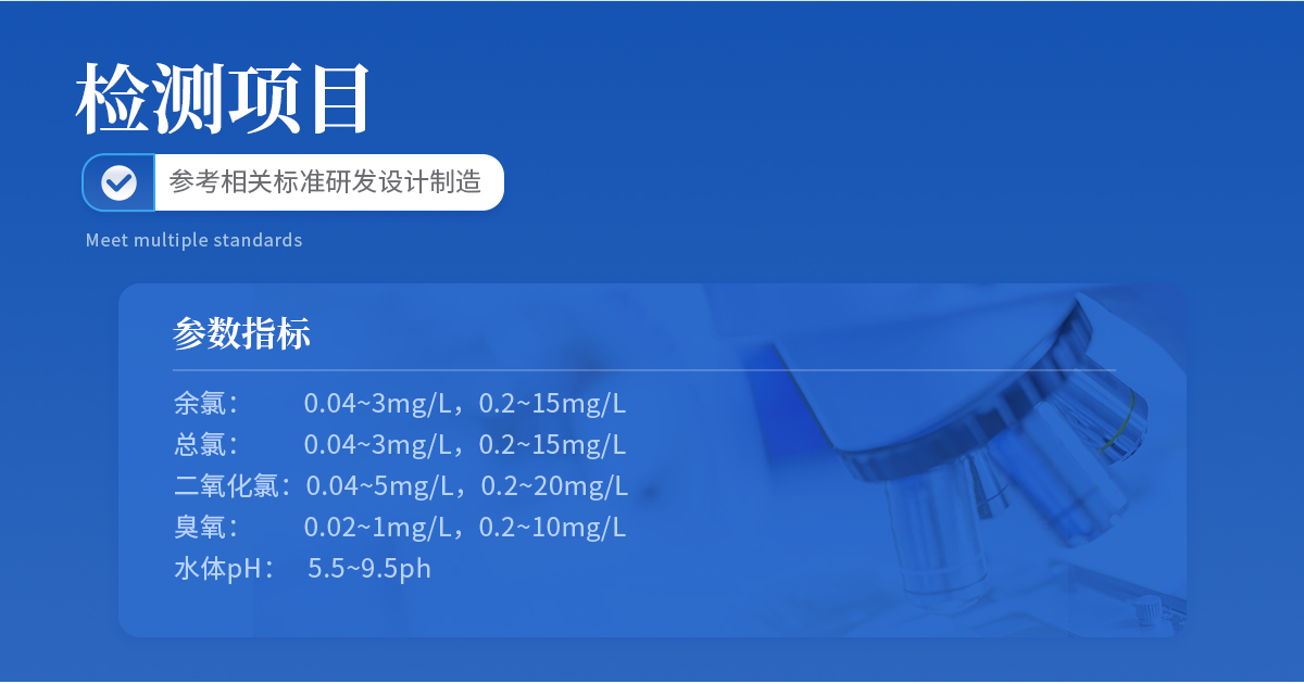 | 适用于饮用水、自来水、医疗废水、工业污水、河流监测、游泳场馆、水源保护、科研实验等。 |