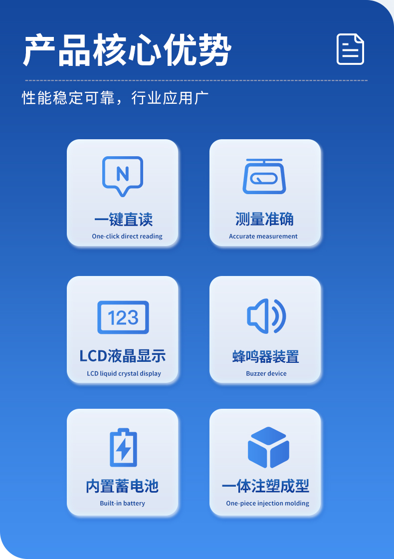 | 1.直读任何密度>1或是<1的液体. | 2.具有温度补偿设定、溶液补偿设定功能,更人性化的操作、更符合现场作业需求 | 3.密度测量台一体注塑成型,安装方便快速,使用时间更长. | 4.采用不锈钢T型架具有极强的耐腐蚀性,专用砝码挂钩极大地降低了吊栏线浮力所造成的误差 | 5.具有密度上、下限功能,可判定待测物的比重合格与否。设有蜂鸣器装置 | 6.内置蓄电池,选配防风罩,更适合现场测试. | 7. 绿底黑字LCD液晶显示,显示更清晰 |